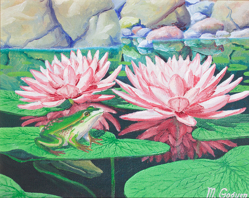 Michael Goguen - Frog with Waterlilies - Oil - 14"x12" - $160